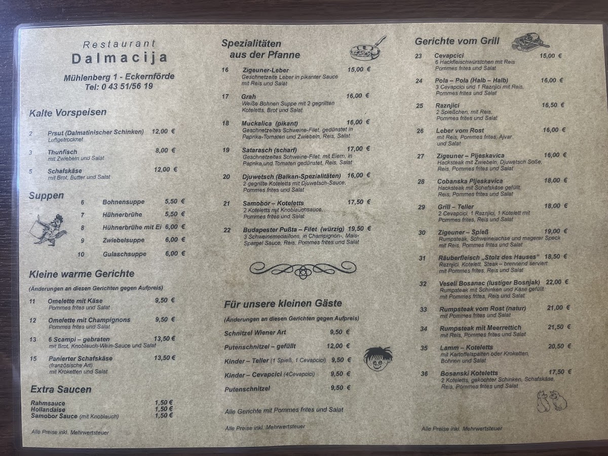 Restaurant Dalmacija Menu